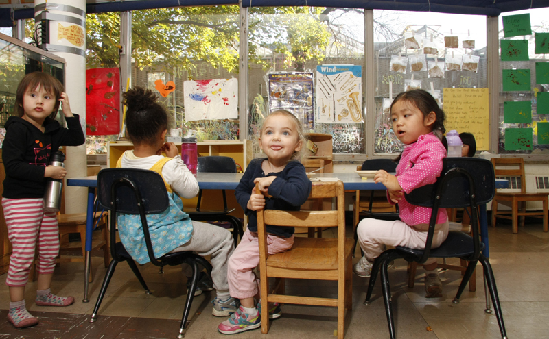 Children sit down for snack in Yellow Door at the MU Child Development Lab (CDL) after their naps on Friday, Oct. 21st. Yellow door consist of children aged two and a half to five years old, seen here from left: Rachel, Brielle, Amelia, and Sophia. The CDL is a teacher-training lab that serves 90 families with children through six weeks of age to thirds grade. One of the key assumptions of the CDL is that children are active and curious. The CDL's goal is to foster those creative learning abilities.