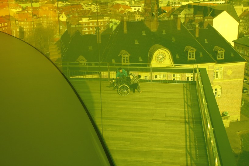 This post might need a little background info. I visited the art museum here in Aarhus. On top of the building is this awesome rainbow thing.