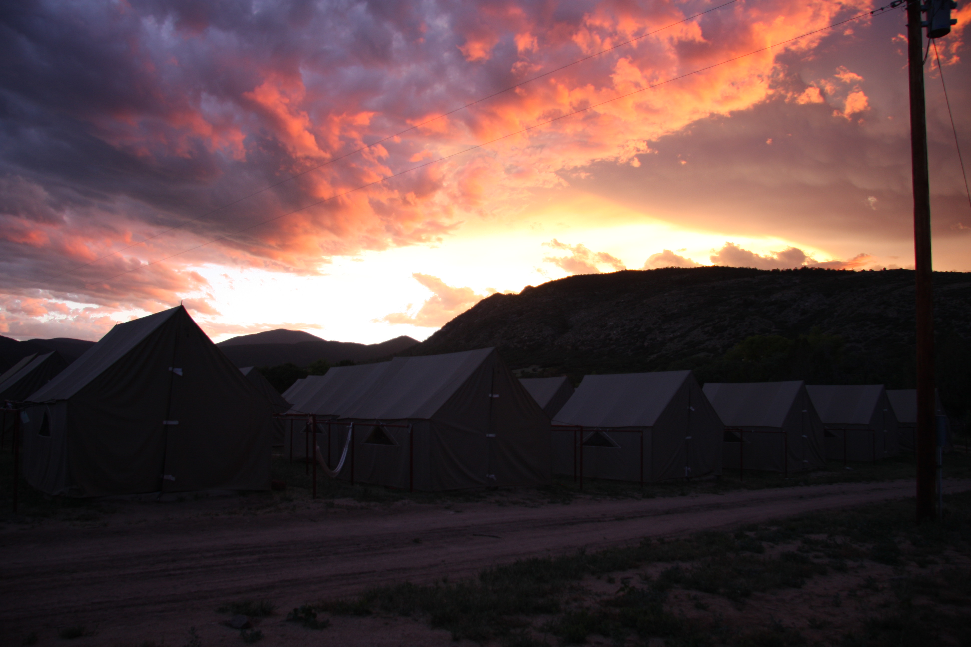 So I work at Philmont Scout Ranch. It’s a high adventure base run by the Boy Scouts. To give you an idea of how big of an operation it is here are some quick facts. 350 campers arrive everyday with 350 coming off the trail everyday. Philmont has a budget of $20 million, employs about 1,000 people, over about 214 square miles Philmont owns. I work for News and Photo Service. The first photo is a typical sunset view from my tent. The next is burros at Harlan. Then a couple shots from Rayado. The man in the hat is John Carson, Kit Carson’s great-great-nephew. I haven’t been taking very many photos yet on my own time while I battling a cold but I plan to.