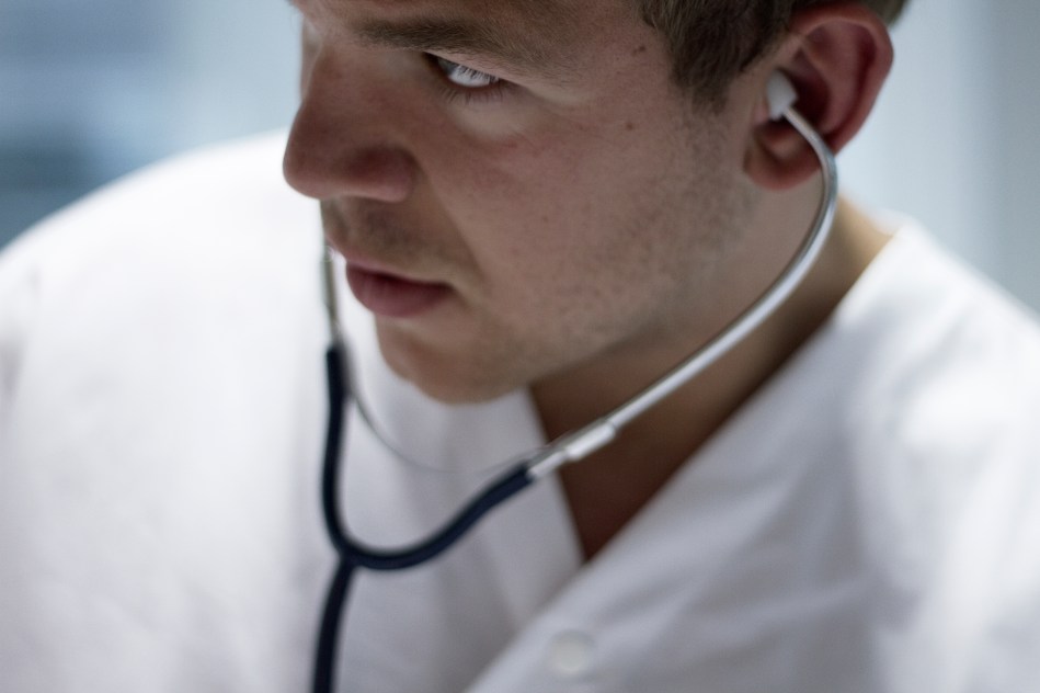 A student learns how to detect heart rate at a nurse training school in Aarhus, Denmark. Females have traditionally dominated the profession of nursing but more males have been turning to the field.